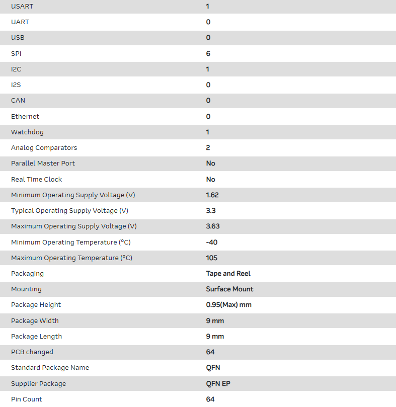 MCU 32-bit ARM Cortex M0+ RISC 64KB Flash 3.3V 64-Pin QFN EP T/R