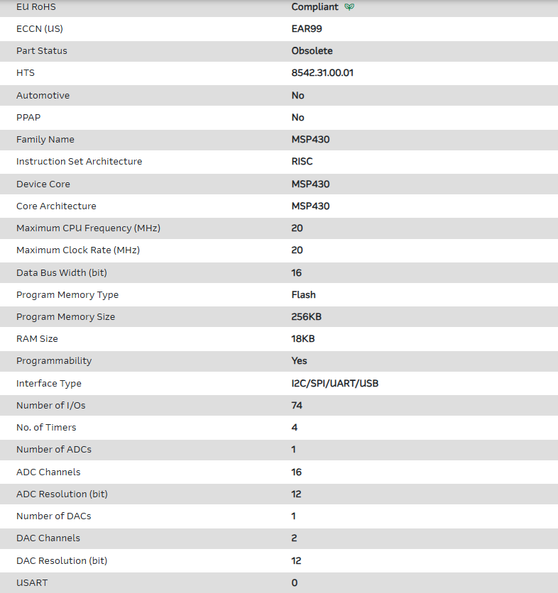 MCU 16-bit MSP430 RISC 256KB Flash 2.5V/3.3V 113-Pin BGA MICROSTAR JUNIOR T/R