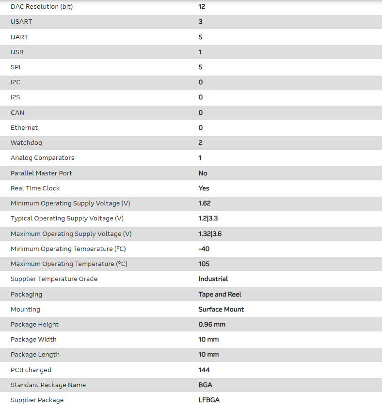 MCU 32-bit ARM Cortex M7 RISC 512KB Flash 1.2V/3.3V 144-Pin LFBGA T/R
