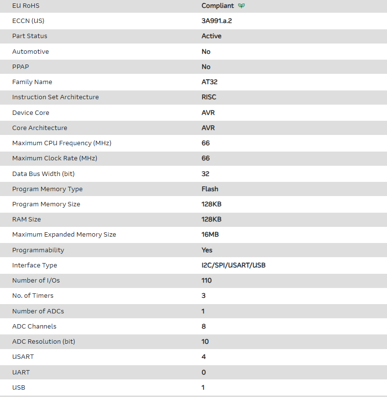 | Part Number | AT32UC3A3128 CTUR |
