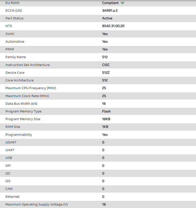 MCU 16-bit S12Z CISC 16KB Flash 32-Pin HVQFN EP T/R Automotive AEC-Q100