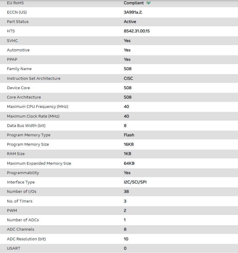 MCU 8-bit S08 CISC 16KB Flash 3.3V/5V Automotive AEC-Q100 48-Pin QFN EP T/R