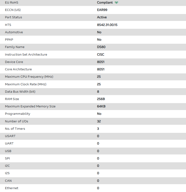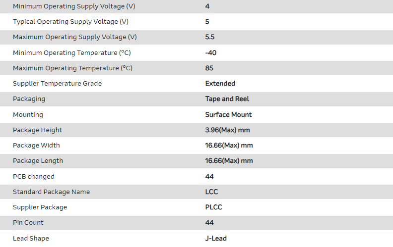 MCU 8-bit 8051 CISC 5V 44-Pin PLCC T/R