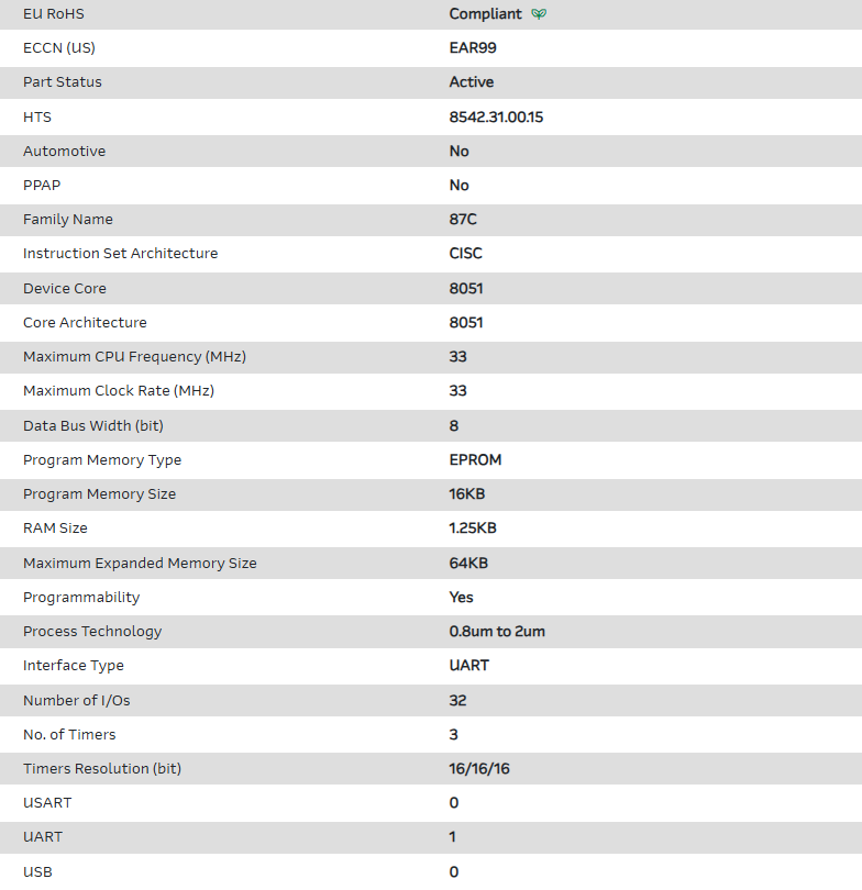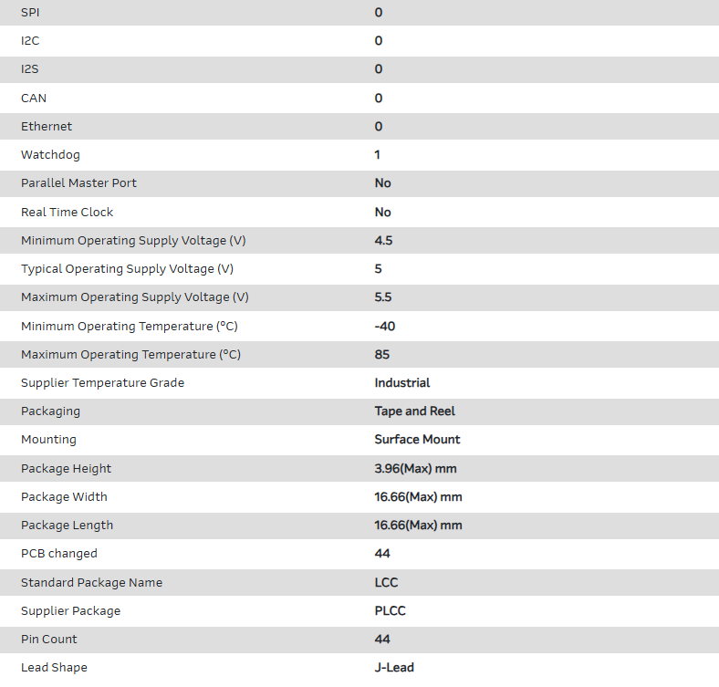 MCU 8-bit 8051 CISC 16KB EPROM 5V 44-Pin PLCC T/R