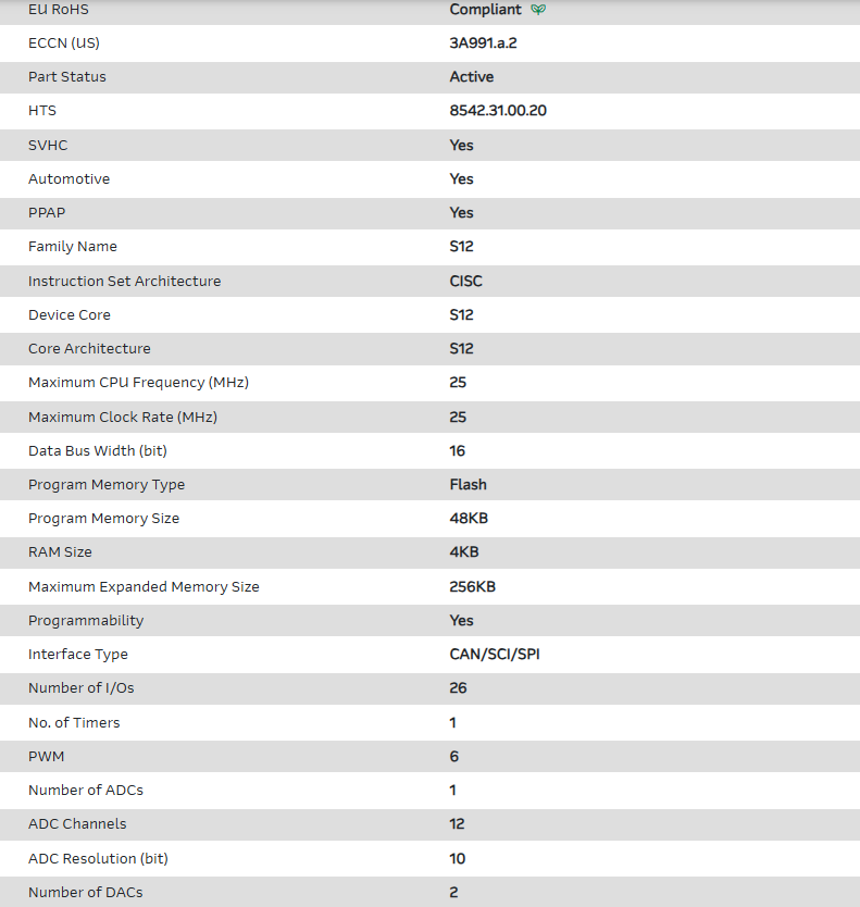 MCU 16-bit S12 CISC 48KB Flash 3.3V/5V Automotive AEC-Q100 32-Pin LQFP T/R