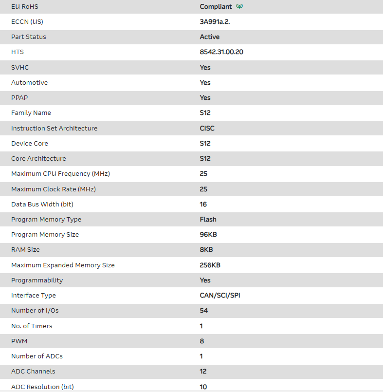 MCU 16-bit S12 CISC 96KB Flash 3.3V/5V Automotive AEC-Q100 64-Pin LQFP T/R