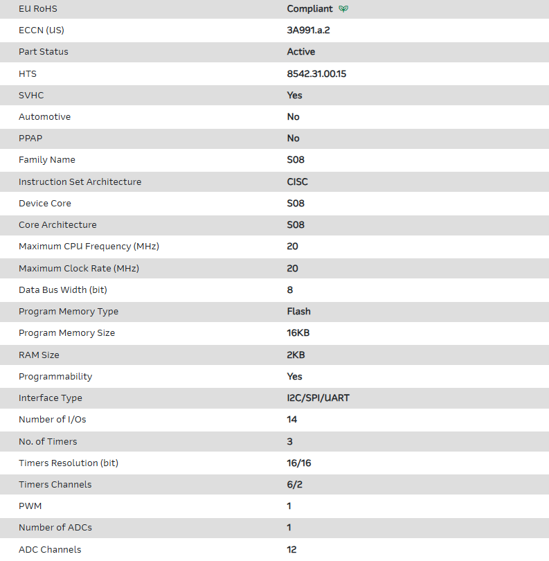 MCU 8-bit S08 CISC 16KB Flash 3.3V/5V 16-Pin TSSOP T/R