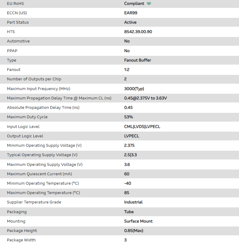 Clock Fanout Buffer 2-OUT 1-IN 1:2 16-Pin QFN EP Tube