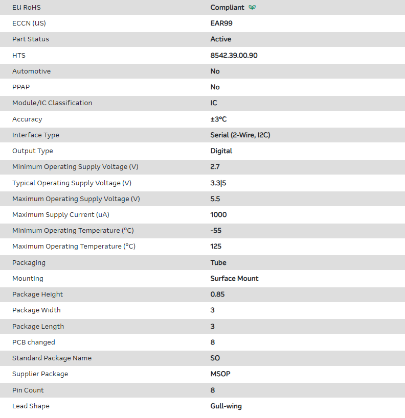 Temp Sensor Digital Serial (2-Wire, I2C) 8-Pin MSOP Tube
