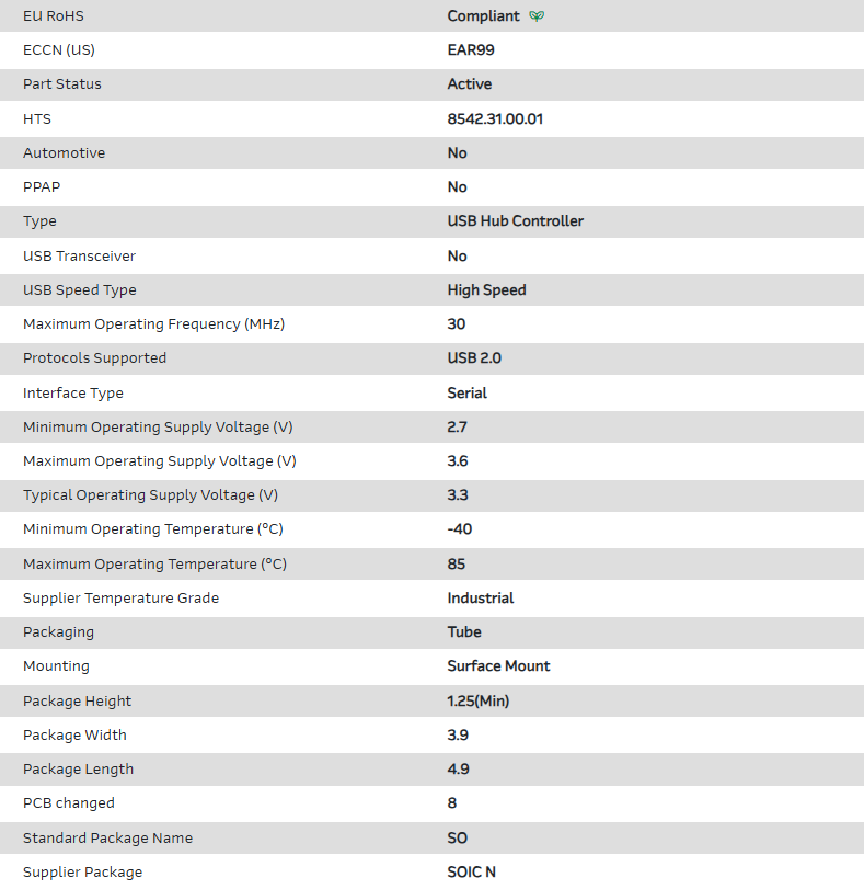 High Speed USB Hub Controller USB 2.0 3.3V Tube 8-Pin SOIC N