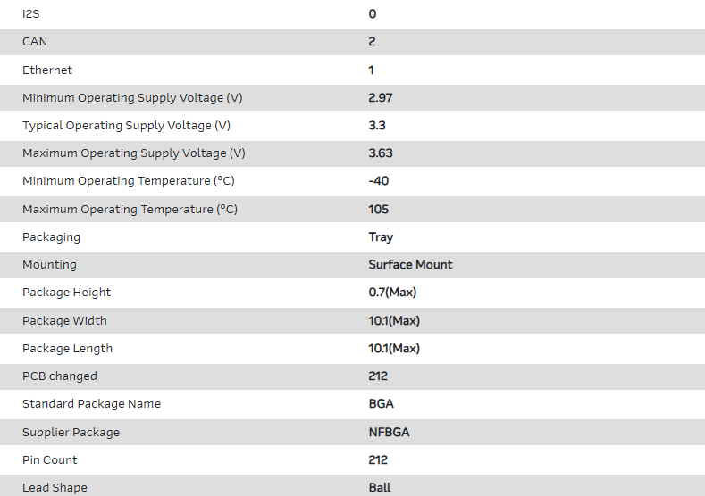 MCU 32-bit ARM Cortex M4F 1MB Flash 3.3V Automotive 212-Pin NFBGA Tray