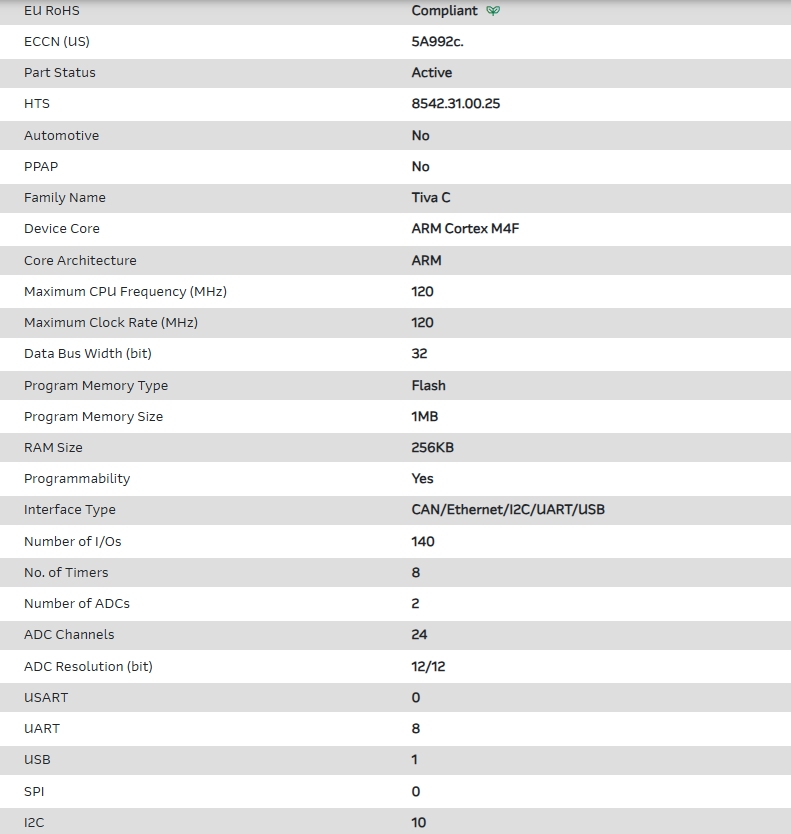 | Part Number | TM4C129LNCZADT3 |