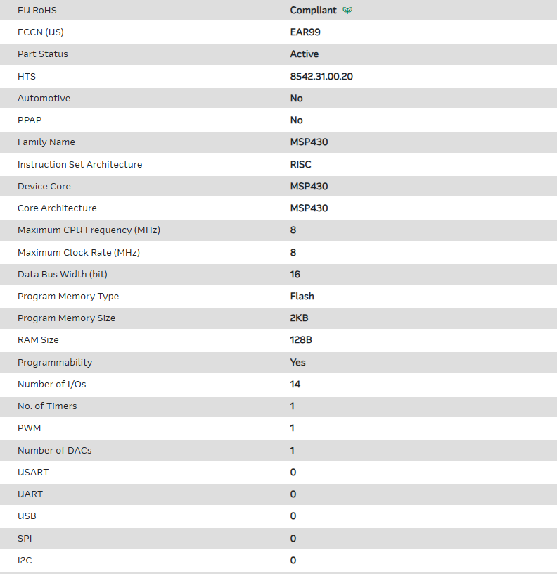 | Part Number | MSP430F1111AIRGET |