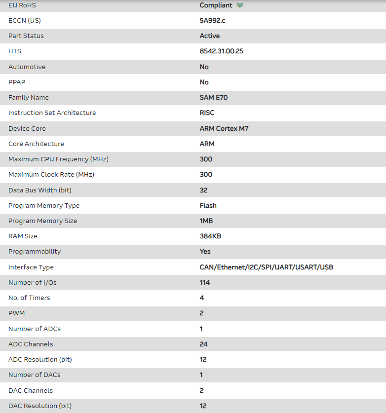 | Part Number | ATSAME70Q20B-CFNT |