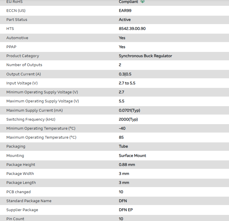 Synchronous Buck Regulator 2.7V to 5.5V Automotive AEC-Q100 10-Pin DFN EP Tube