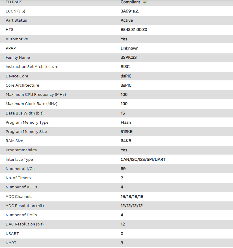 | Part Number | dsPIC33CH512MP508-E/PT |