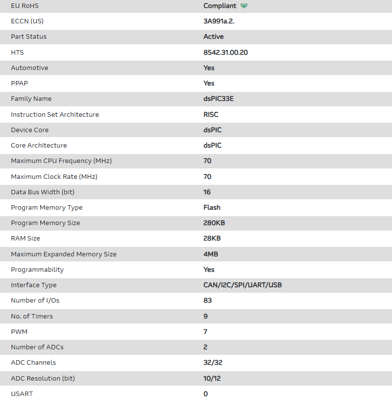 | Part Number | dsPIC33EP256MU810-E/PT |