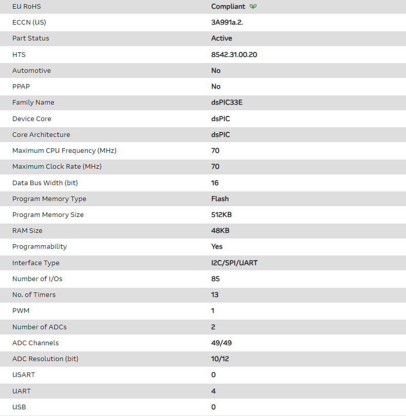 MCU 16-bit dsPIC 512KB Flash 3.3V 100-Pin TQFP Tray