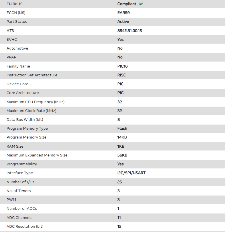 MCU 8-bit PIC RISC 14KB Flash 3.3V/5V 28-Pin SSOP T/R