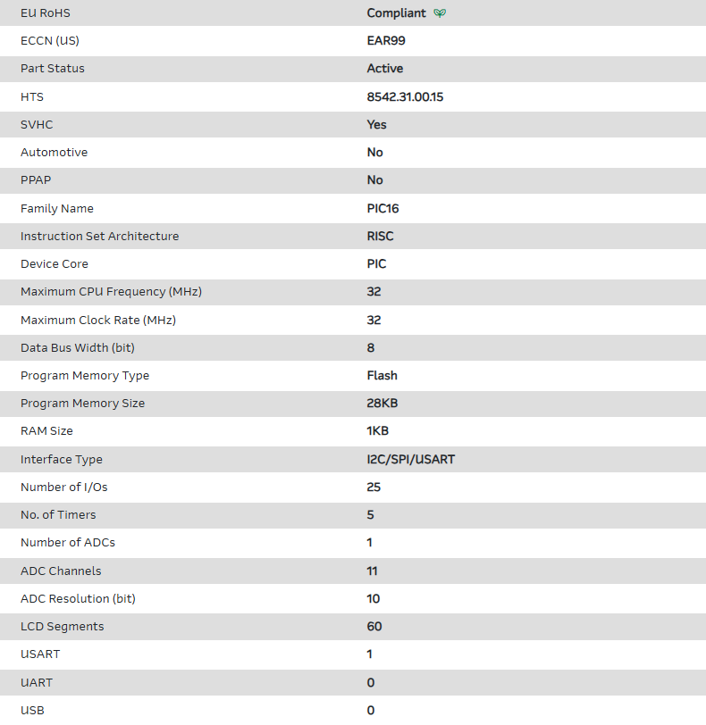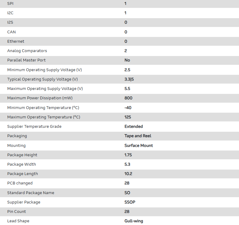 MCU 8-bit PIC RISC 28KB Flash 3.3V/5V 28-Pin SSOP T/R