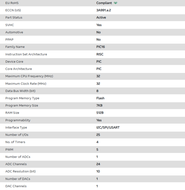 MCU 8-bit PIC RISC 7KB Flash 2.5V/3.3V 28-Pin SSOP T/R