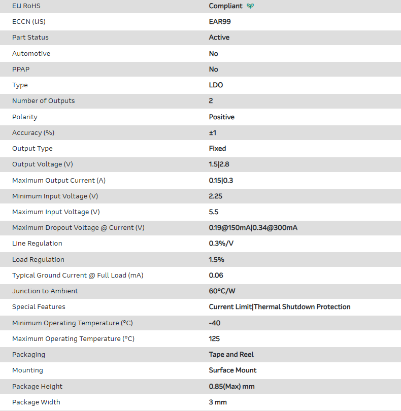 LDO Regulator Pos 1.5V2.8V 0.15A/0.3A 10-Pin DFN EP T/R