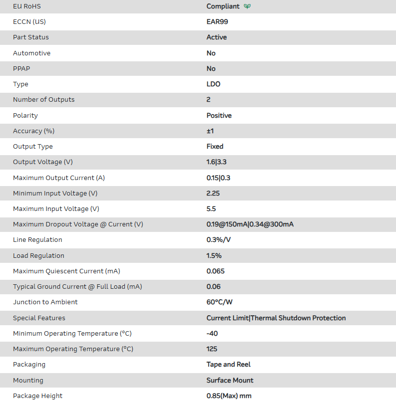 LDO Regulator Pos 1.6V3.3V 0.15A/0.3A 10-Pin DFN EP T/R