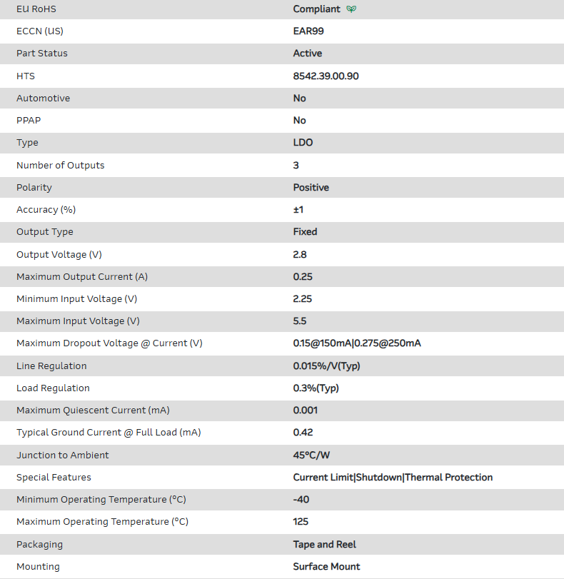 LDO Regulator Pos 2.8V 0.25A/0.25A/0.25A 16-Pin QFN EP T/R