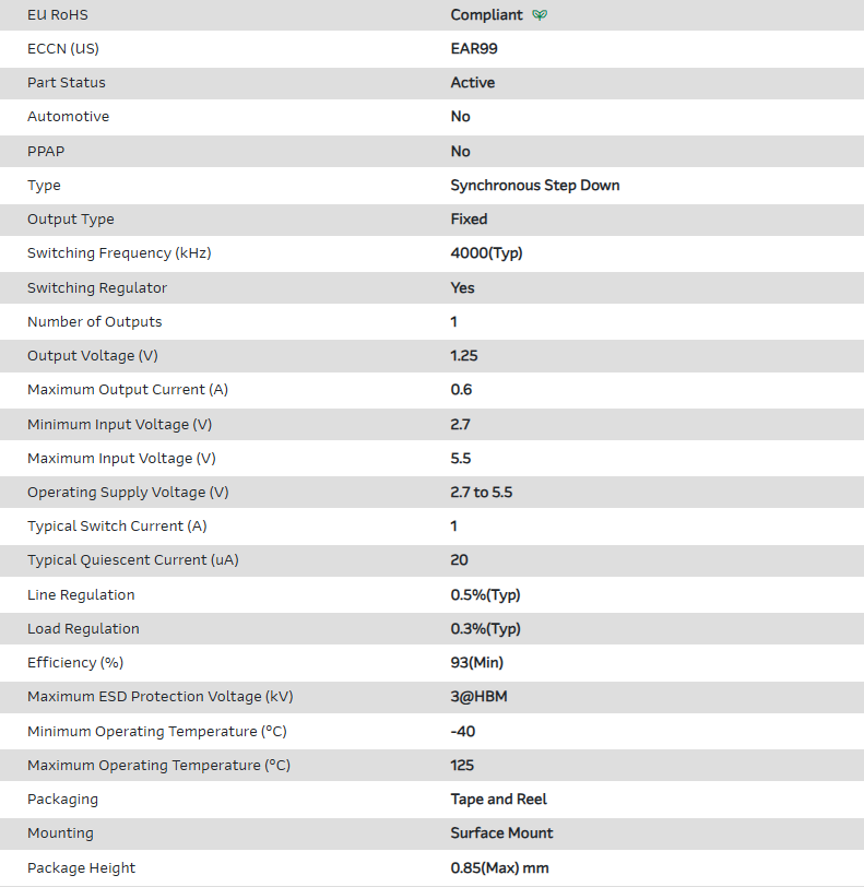 Conv DC-DC 2.7V to 5.5V Synchronous Step Down Single-Out 1.25V 0.6A 8-Pin DFN EP T/R