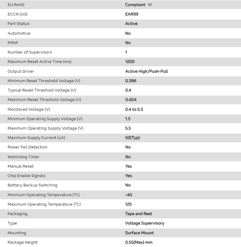 Processor Supervisor 0.4V 1 Active High/Push-Pull 6-Pin TDFN EP T/R