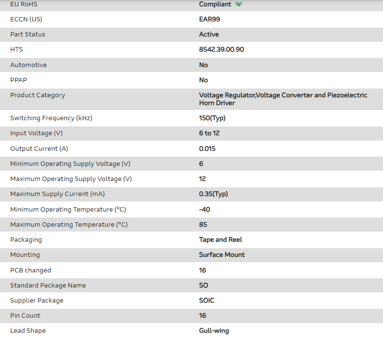 Voltage Regulator,Voltage Converter and Piezoelectric Horn Driver 16-Pin SOIC T/R