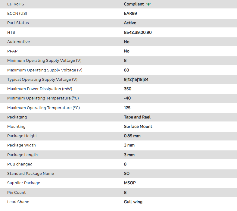 LED Driver 9V/12V/15V/18V/24V 8-Pin MSOP T/R