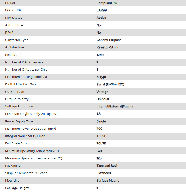 | Part Number | MCP47FVB21A1T-E/ST |