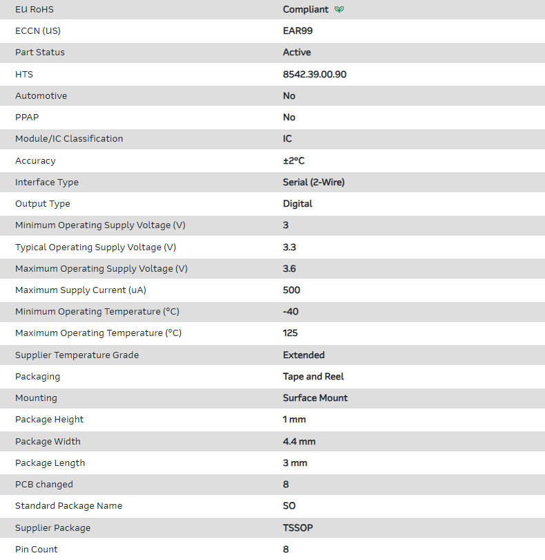 Temp Sensor Digital Serial (2-Wire) 8-Pin TSSOP T/R