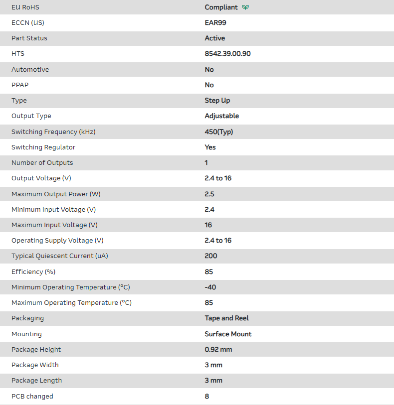 Conv DC-DC 2.4V to 16V Step Up Single-Out 2.4V to 16V 2.5W 8-Pin MSOP T/R