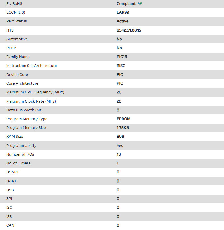 MCU 8-bit PIC RISC 1.75KB EPROM 3.3V/5V 18-Pin SOIC W Tube