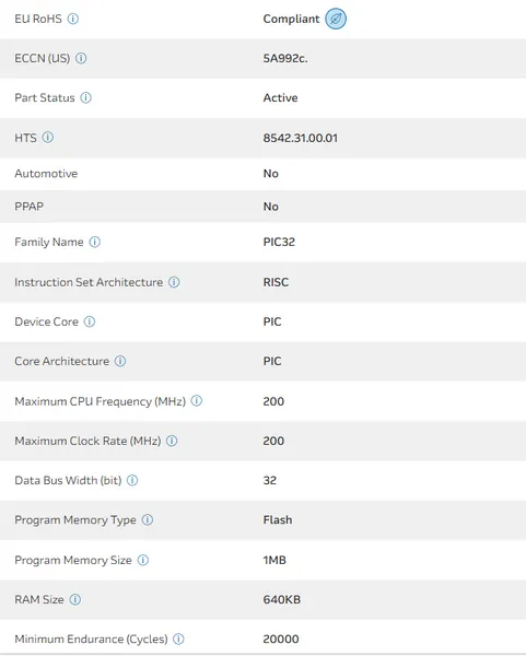 Secure MCU 32bit PIC32 PIC RISC 1MB Flash 1.8V/3.3V 288-Pin LFBGA Tray