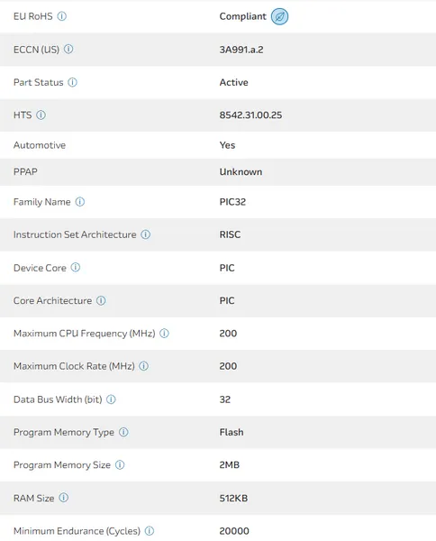 | Part Number | PIC32MZ2048EFG100-E/PT |