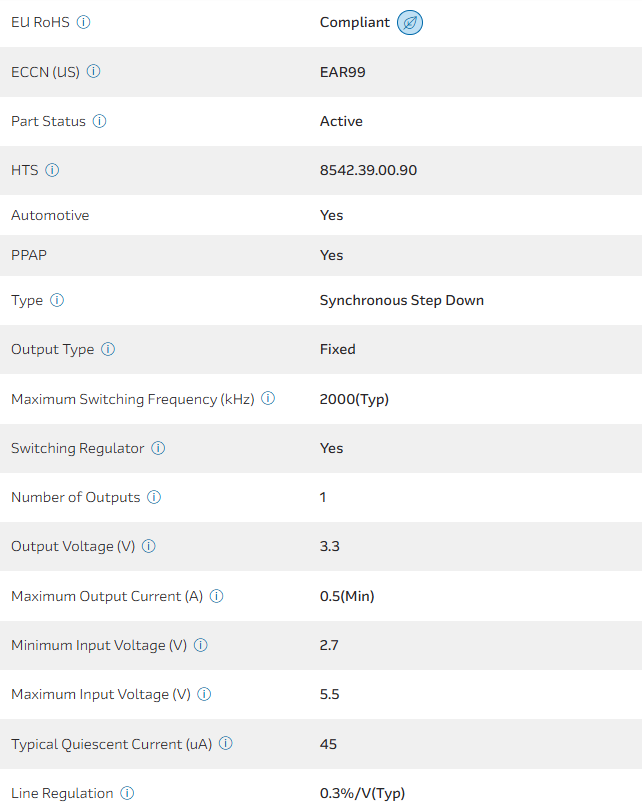 Conv DC-DC 2.7V to 5.5V Synchronous Step Down Single-Out 3.3V 0.5A Automotive AEC-Q100 8-Pin MSOP Tube