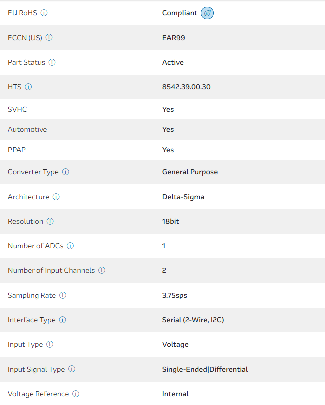 2-Channel Single ADC Delta-Sigma 3.75sps 18-bit Serial Automotive AEC-Q100 8-Pin SOIC N Tube