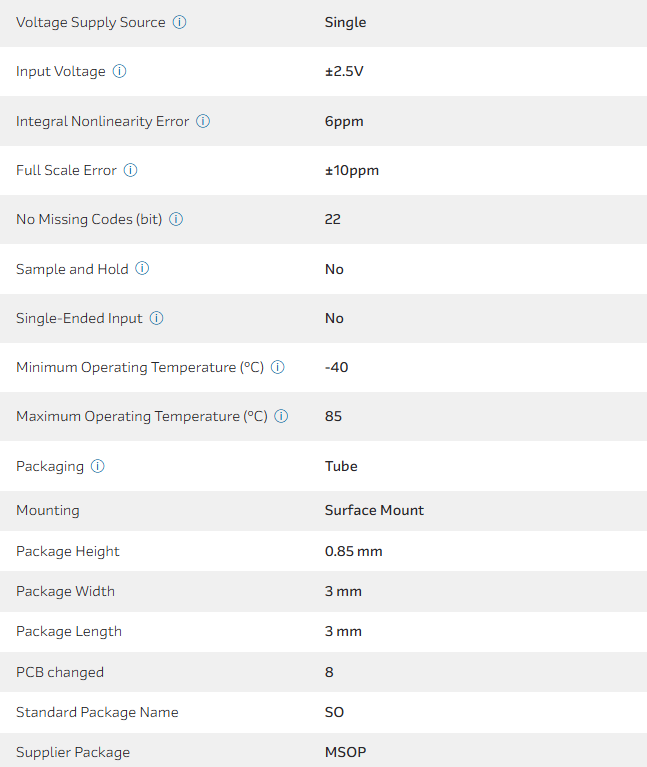 1-Channel Single ADC Delta-Sigma 14sps 21.9-bit Serial Automotive AEC-Q100 8-Pin MSOP Tube