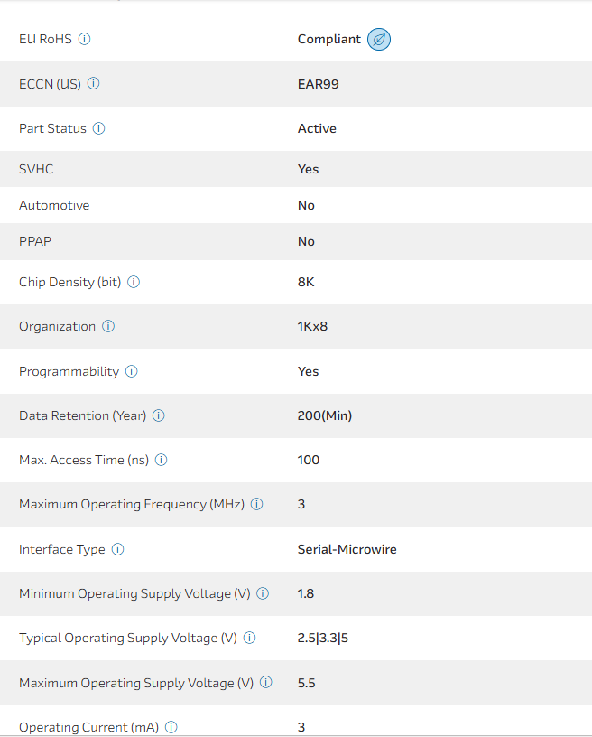 EEPROM Serial-Microwire 8K-bit 1K x 8 2.5V/3.3V/5V 8-Pin SOIC N T/R