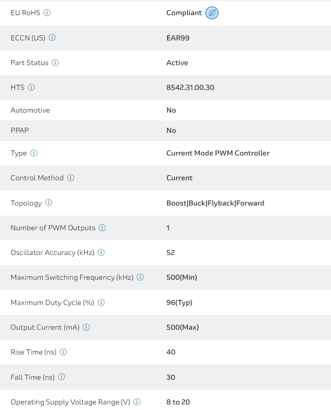 Current Mode PWM Controller 500mA 500kHz 8-Pin SOIC N Tube