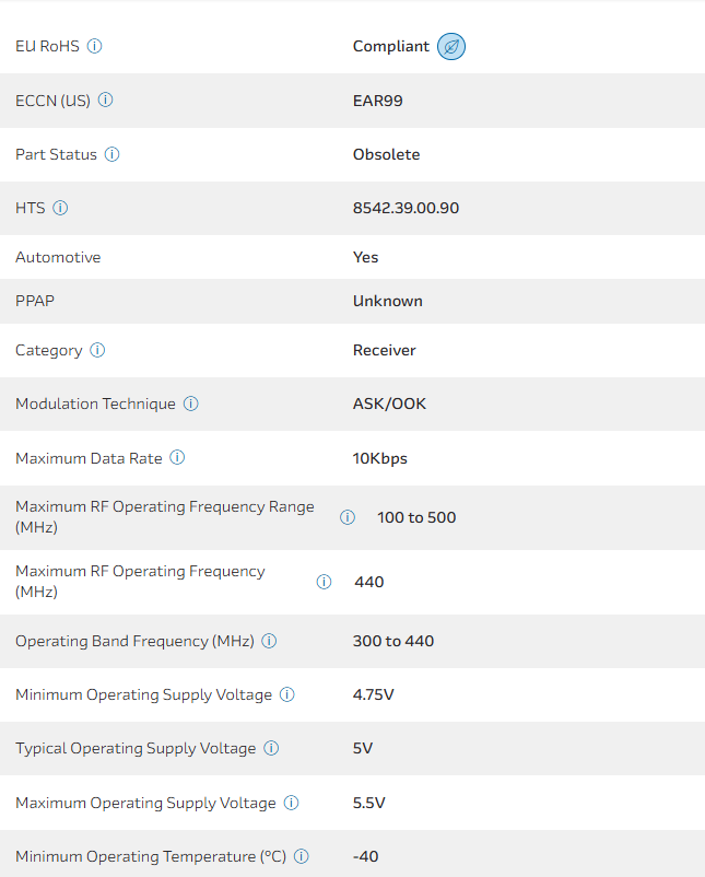 RF Receiver ASK/OOK 5V 8-Pin SOIC N Tube