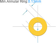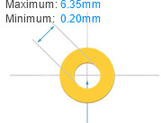 | PTH hole Size | 0.20mm - 6.35mm | The annular ring size will be enlarged to 0.15mm in production. | ![]() |
