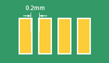 To have solder mask bridge, the spacing between copper pads edge must be 0.2mm (8mils) or more. | ![]() |