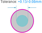 | Hole size Tolerance (Plated) | +0.13mm/-0.08mm | e.g. for the 1.00mm Plated hole, the finished hole size between 0.92mm to 1.13mm is acceptable. | ![]() |
