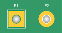 | Pad to Pad clearance(Pad with hole, Different nets) | 0.5mm | ![]() |