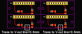 | Trace to V-cut line | 0.4mm | Ship as panel with V-scoring: Trace to V-cut line≥0.4mm | ![]() |